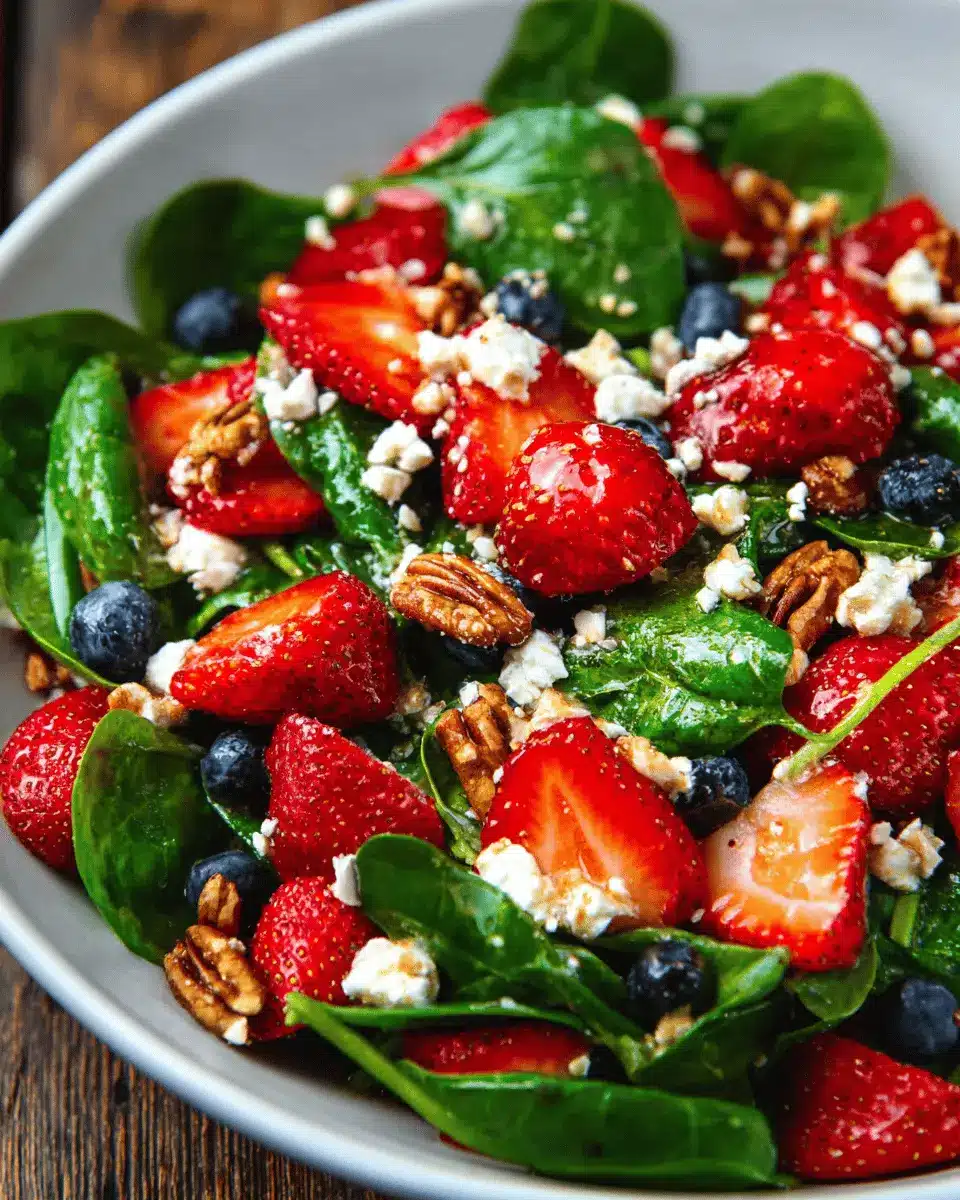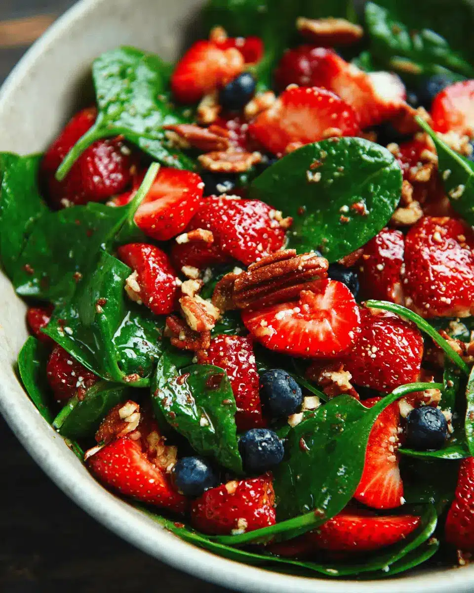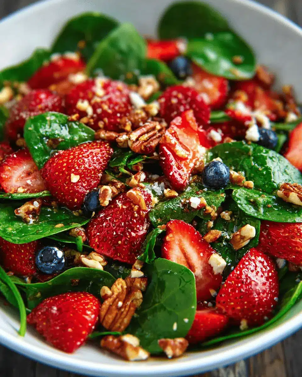 The 15-Minute Strawberry Spinach Salad is a delightful way to embrace freshness and nutrition in your meals. Perfect for busy weeknights or festive gatherings, this salad is not only easy to prepare but also bursting with flavors. Enjoy it as a refreshing side or a main dish booster that everyone will love!