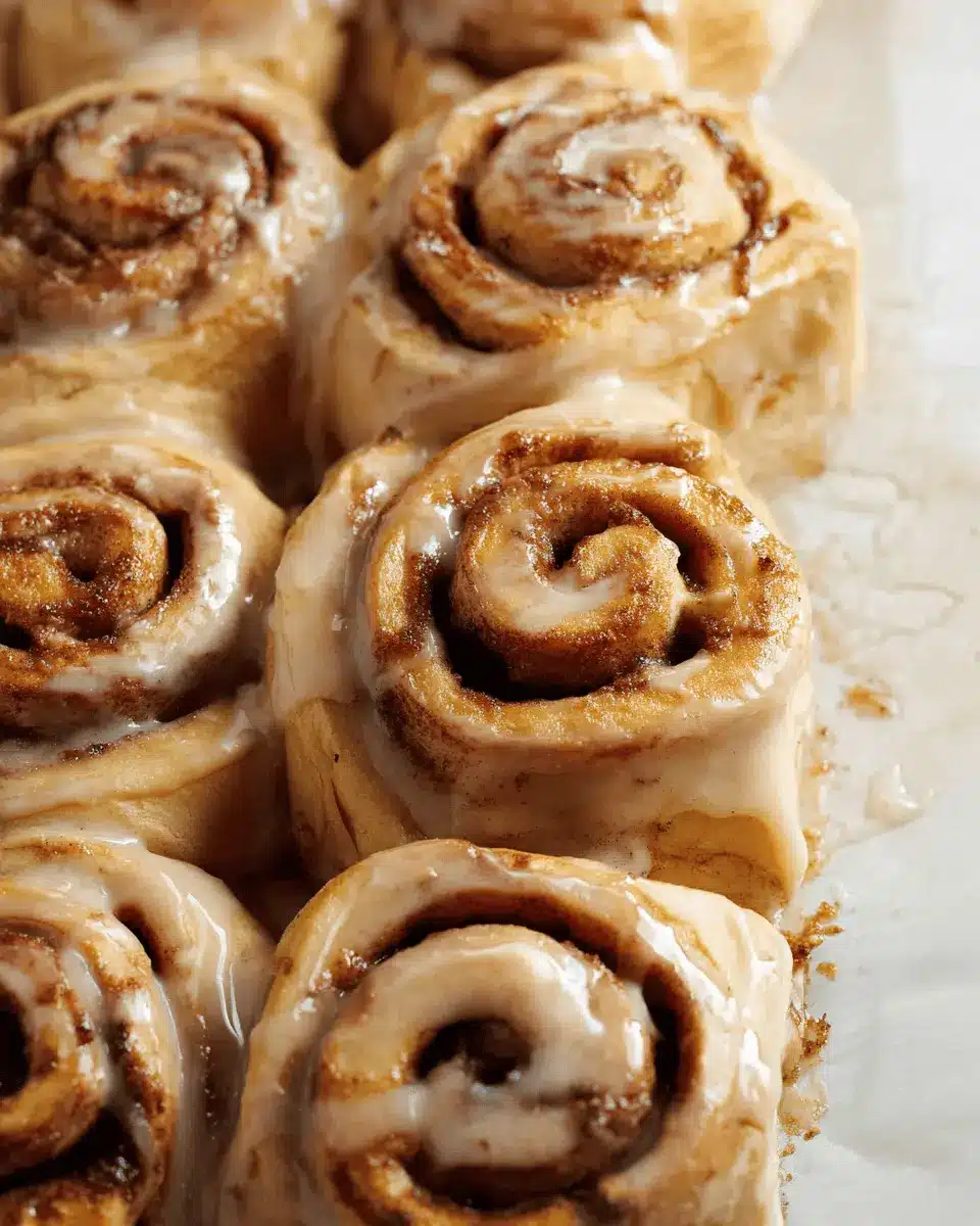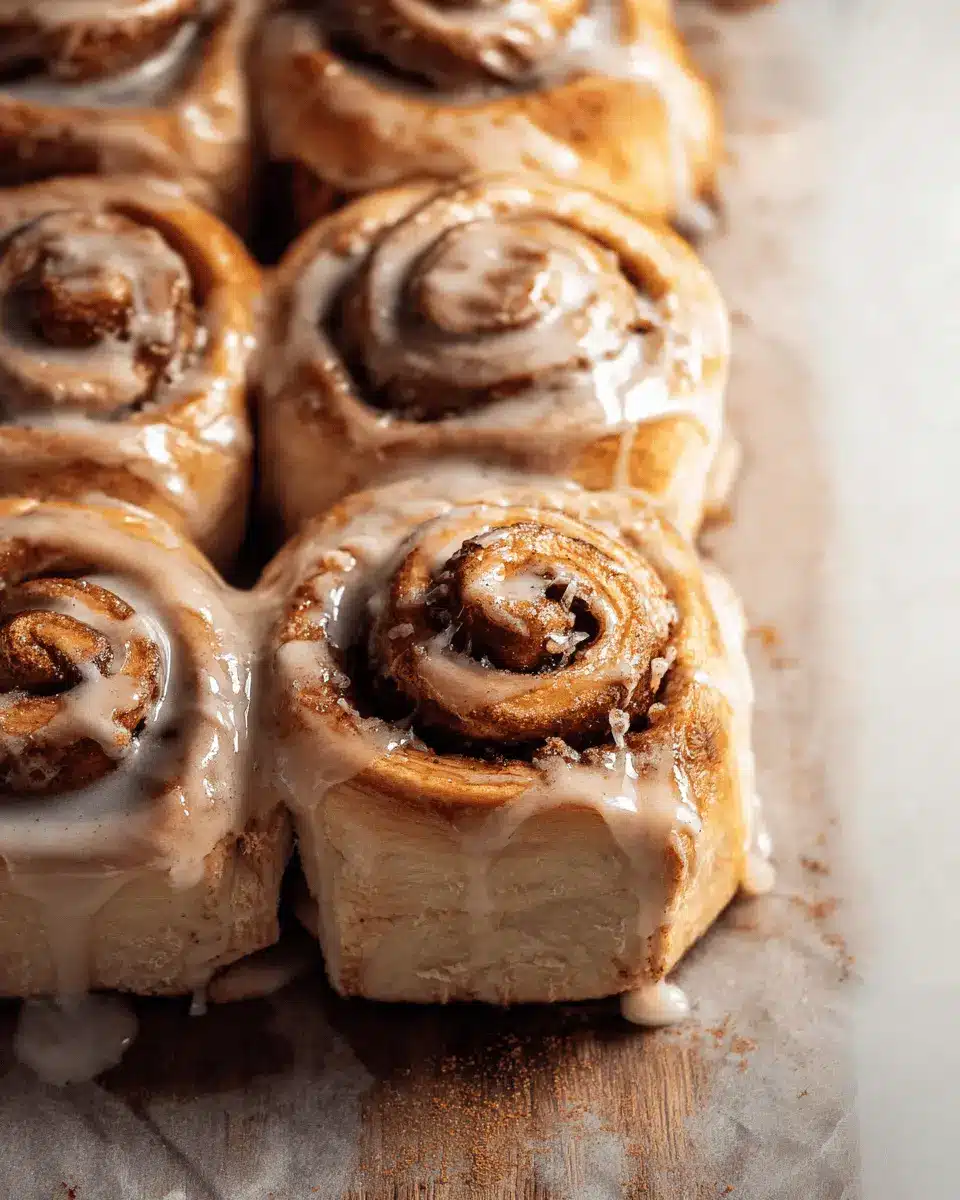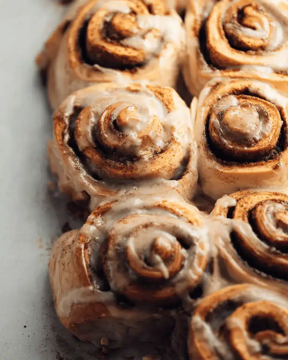 While your cinnamon rolls cool, it’s time to make the tangy frosting. In your mixer, combine ⅓ cup of unsalted butter, 2 ounces of cream cheese, 2 cups of powdered sugar, 2 teaspoons of ground cinnamon, 1 tablespoon of milk, and 1 teaspoon of vanilla extract. Whip until light and fluffy. Spread this frosting over the warm rolls for an indulgent finish.