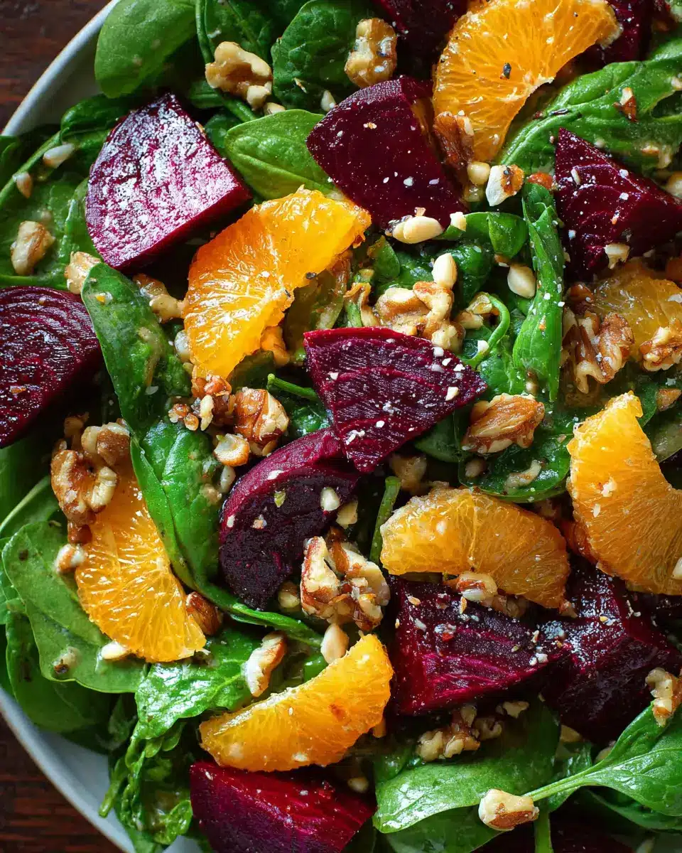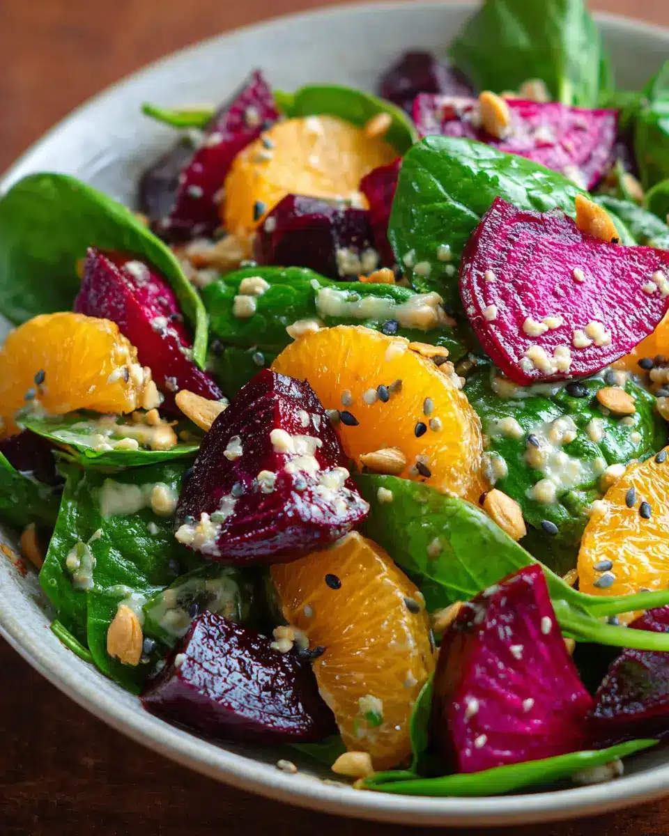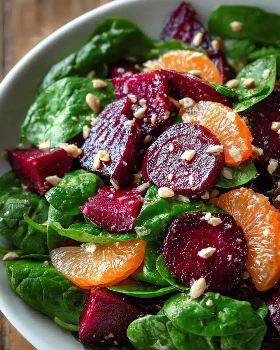 Beet Salad with Spinach and Honey-Mustard Lemon Dressing