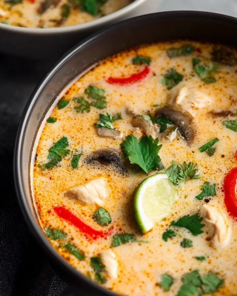 If you're ready to dive into the full recipe, click here: Easy Tom Kha Gai - Thai Coconut Soup. This soup is perfect for adapting to suit any dietary needs while still providing that rich, comforting flavor beloved in Thai cuisine.