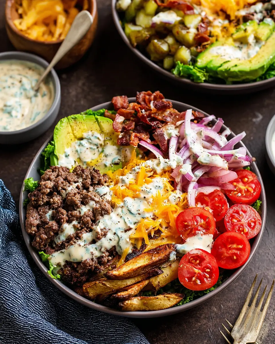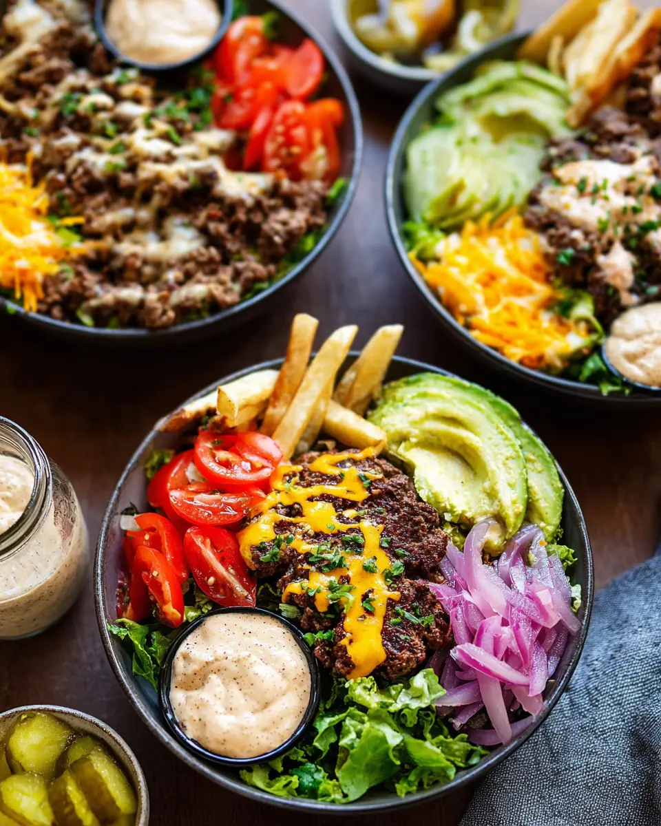 With your burger bowls fully assembled, it’s time to dig in! Each bite is a delicious explosion of flavor, and the best part? You can easily customize every aspect to make it your own. Whether you’re watching your carbs or simply looking for a new, fun way to enjoy burgers, these bowls are sure to satisfy. Happy eating!