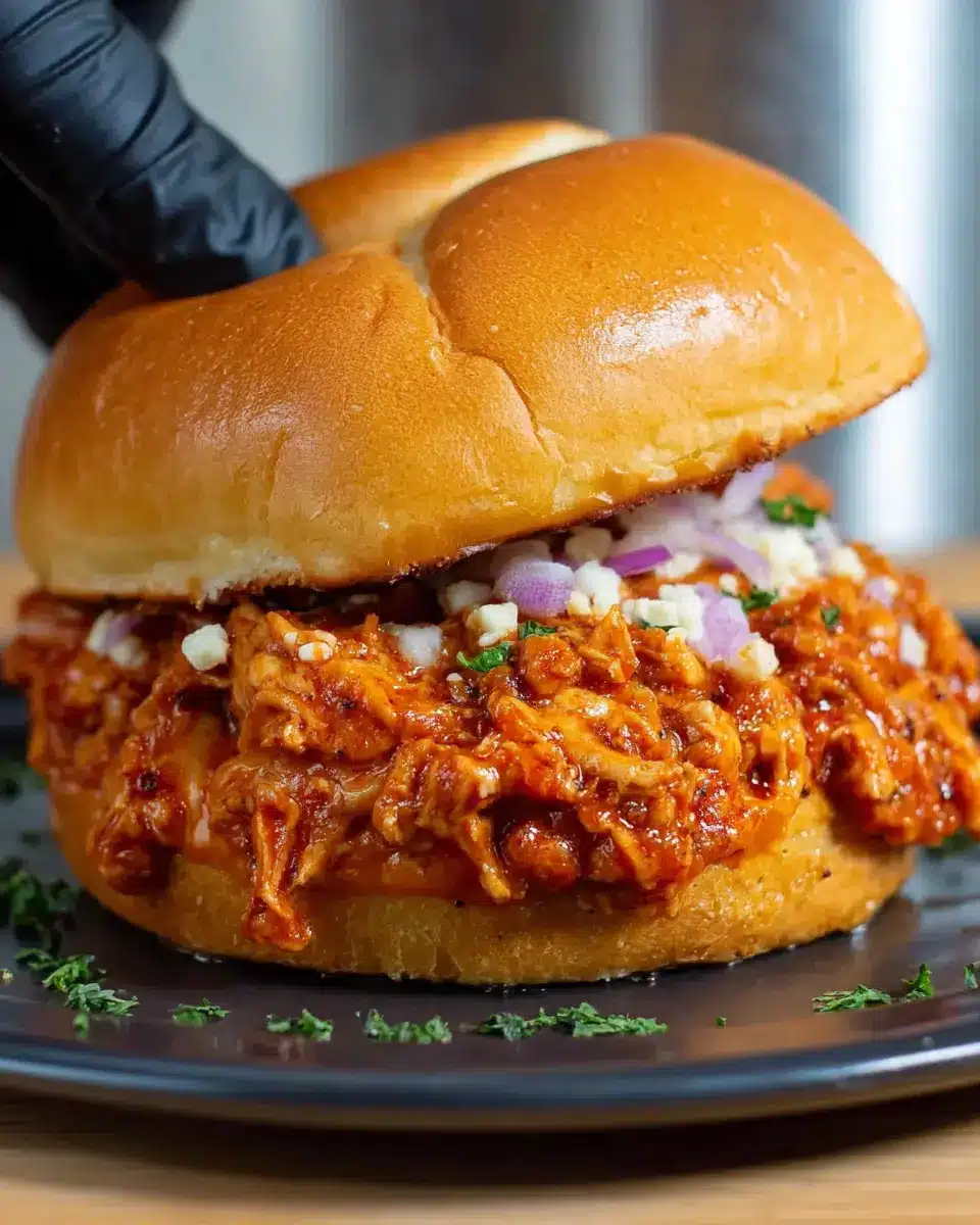Finally, it’s assembly time! Spoon a generous amount of your delicious chicken mixture onto the bottom half of each toasted bun. Top with the other half and garnish with green onions if desired. Serve hot, and watch your loved ones savor every bite!