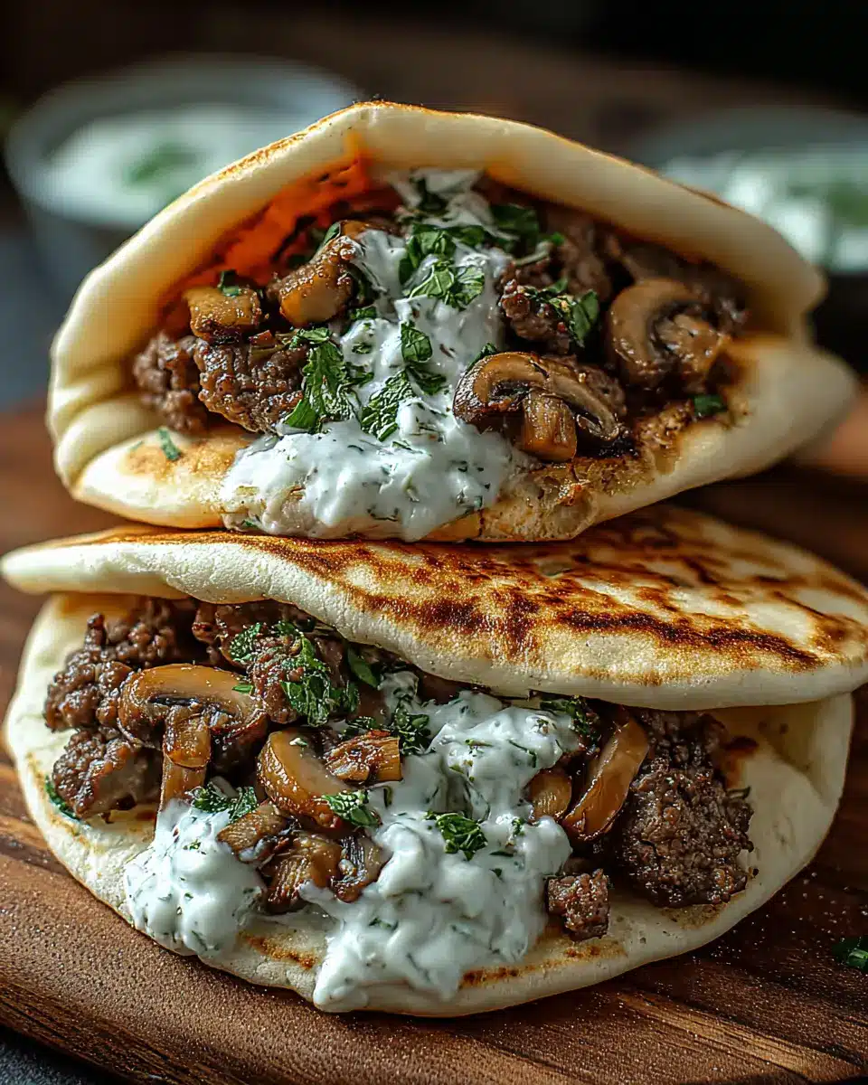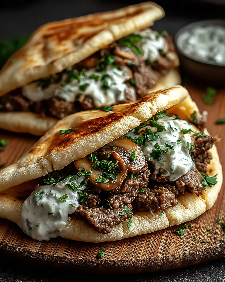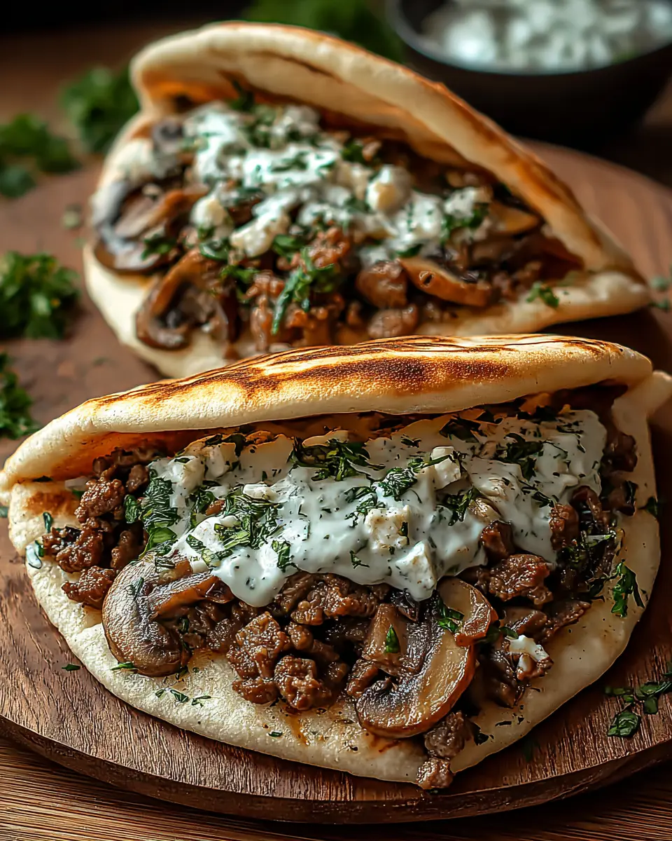 These cheesy beef and mushroom pita pockets are a delightful and quick meal option that balances savory flavors with creamy tzatziki sauce. Perfect for weeknight dinners or casual gatherings, they’re sure to impress! Give this recipe a try, and enjoy the delicious Mediterranean twist!