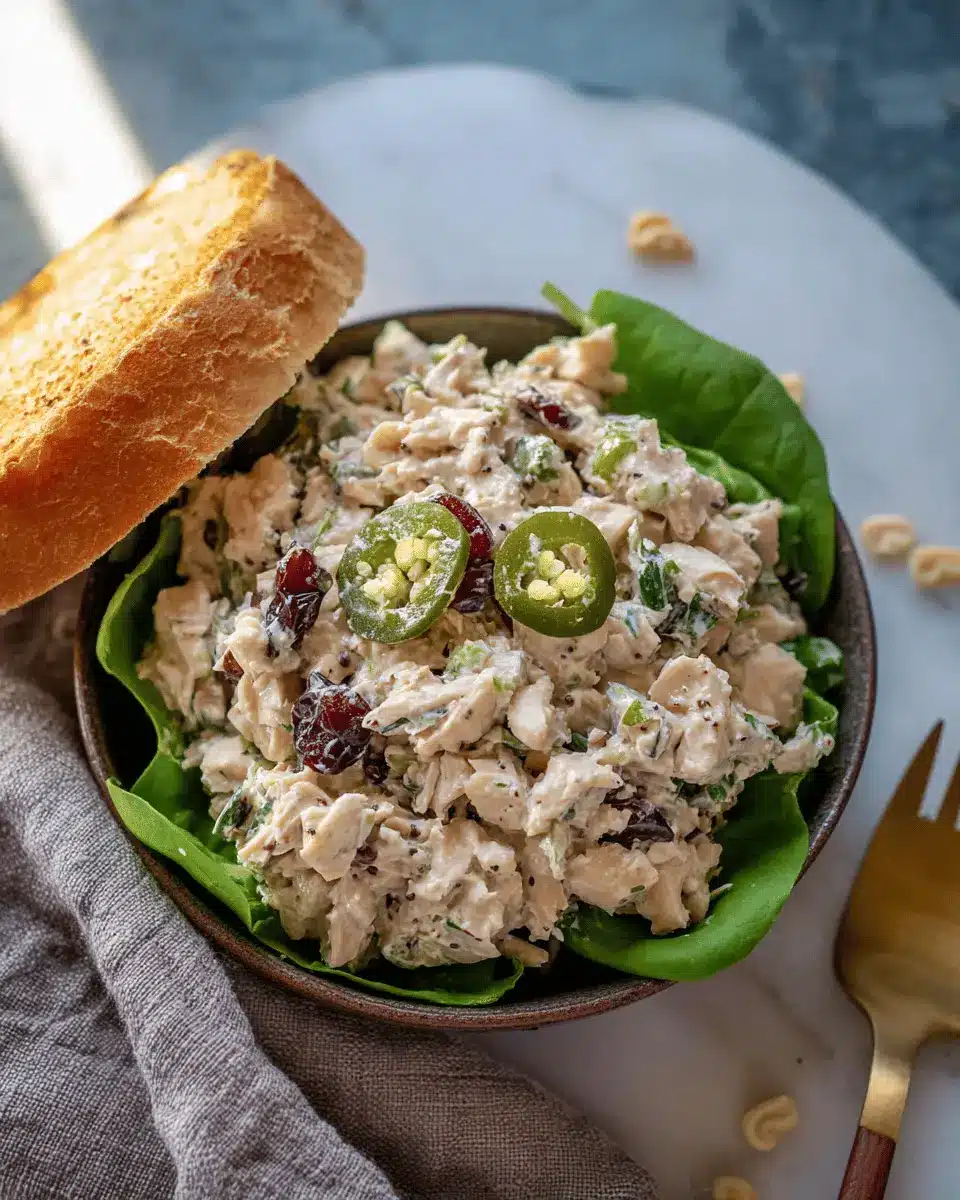 Packed with about 25 grams of protein, this cherry jalapeno chicken salad not only fuels your energy but also supports muscle repair and growth. And who doesn’t love a protein-rich dish?