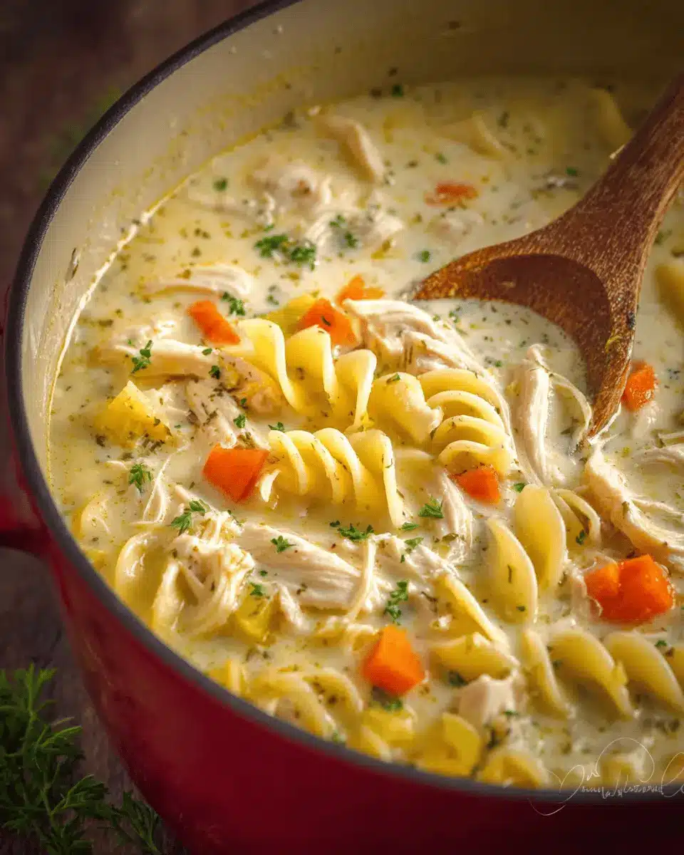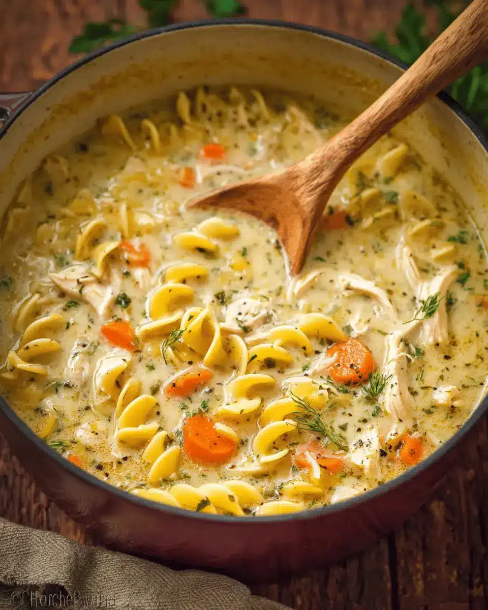 There you have it: a nourishing, creamy chicken noodle soup that's bound to warm both your heart and stomach! Enjoy this delightful recipe with a slice of crusty bread or a fresh garden salad. Happy cooking!