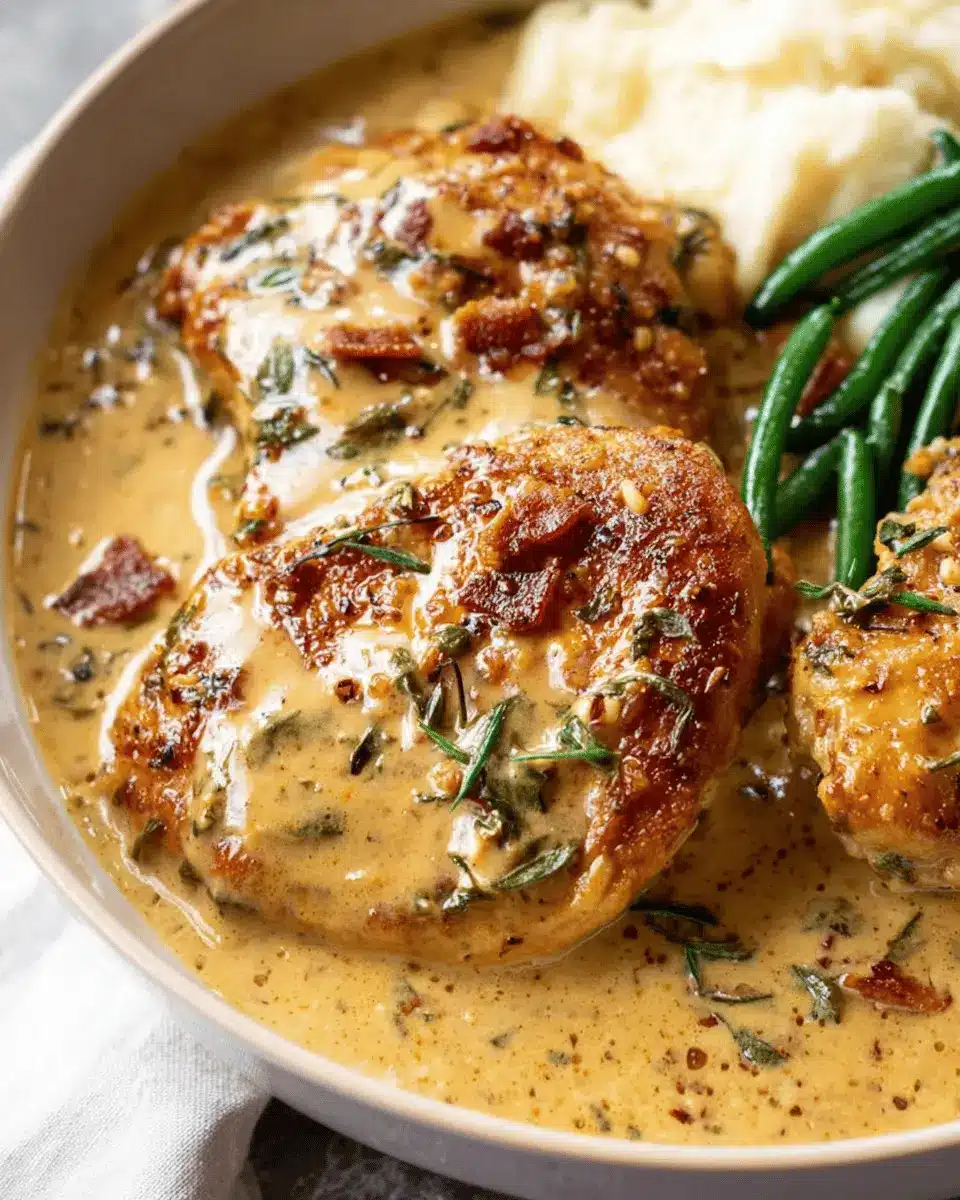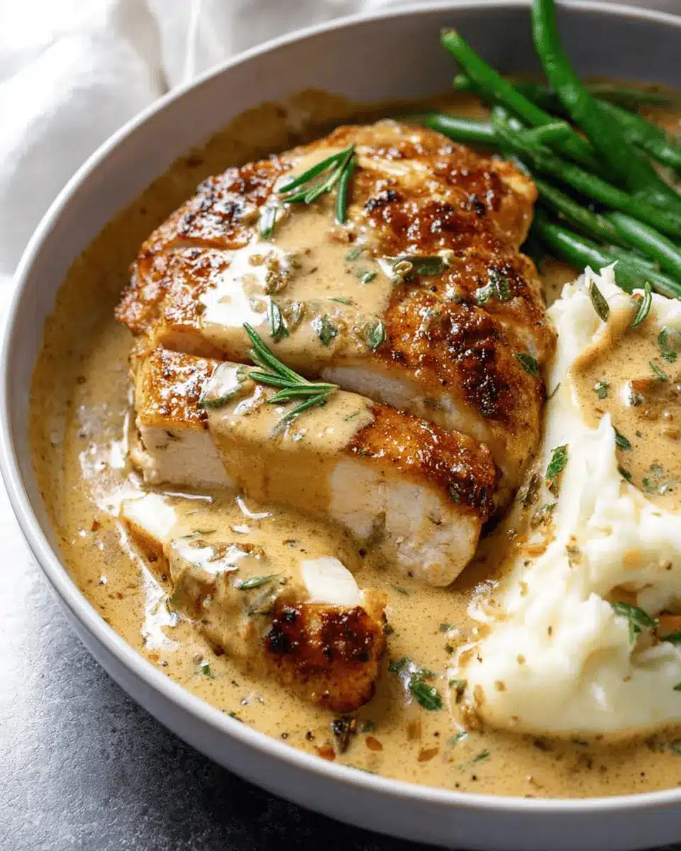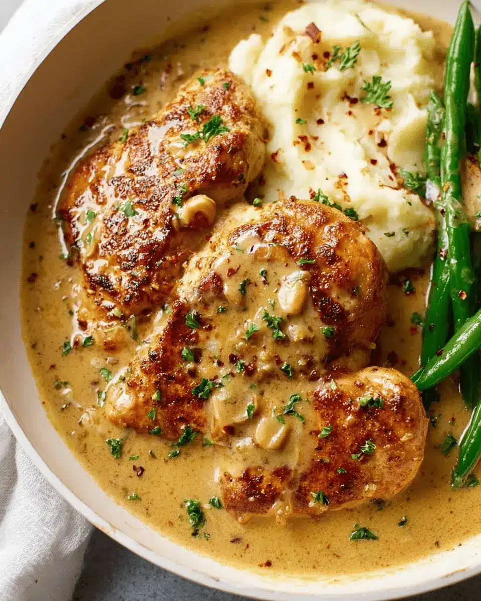 Pair your Creamy Garlic Chicken with mashed potatoes or roasted green beans for a well-rounded meal.