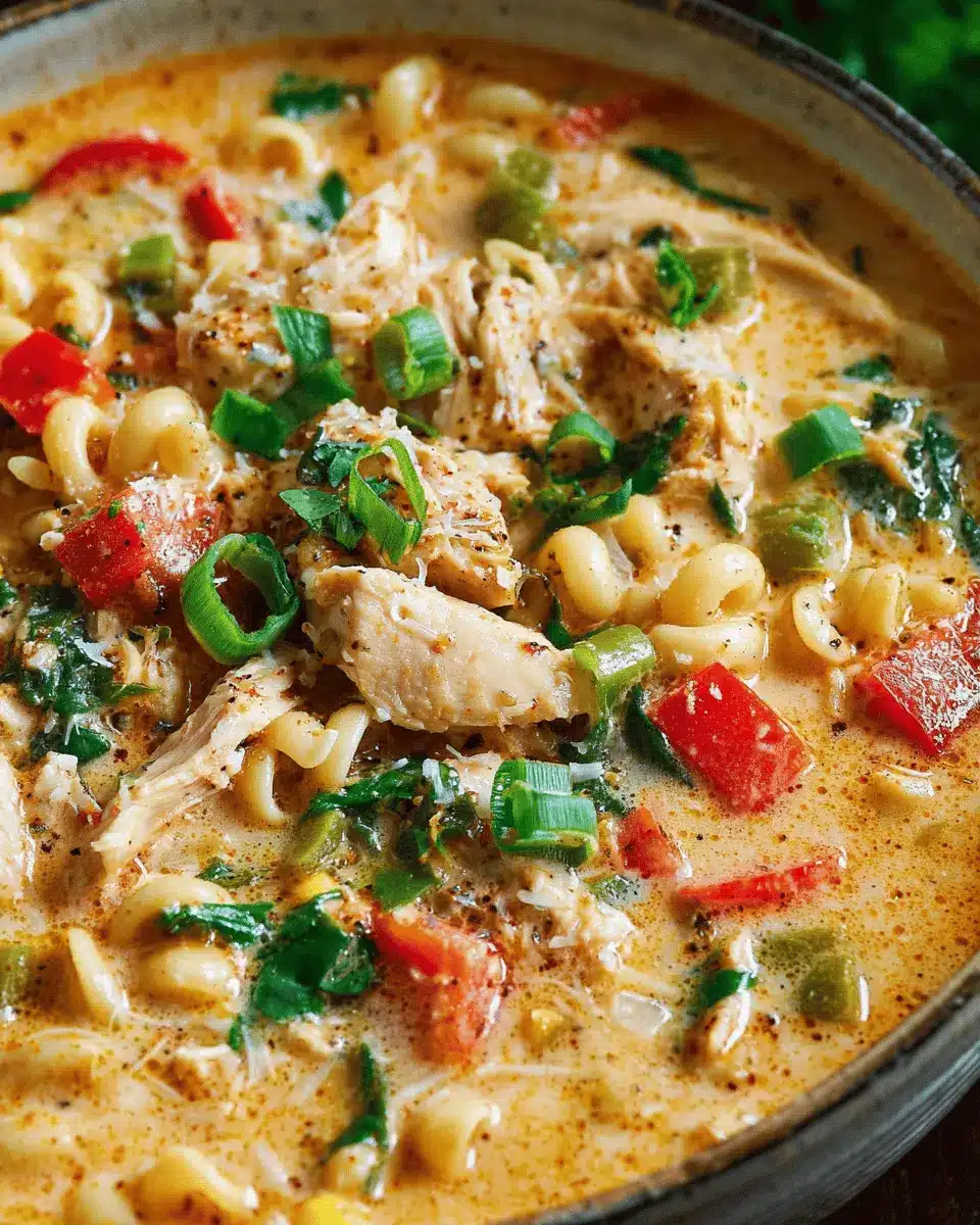 Creamy Parmesan Cajun Chicken Pasta Soup