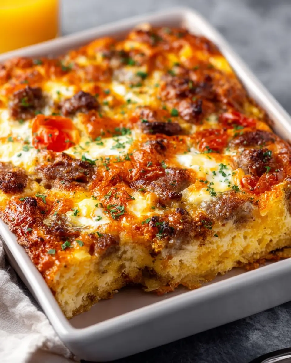 Pop your casserole in the oven and let it bake for 35 to 40 minutes. Keep an eye on it, as oven times can vary. It’s ready when a toothpick inserted into the center comes out clean. Once done, allow the casserole to cool for a few minutes before slicing. Serve it warm, and you’ll have a breakfast that feels like a celebration!