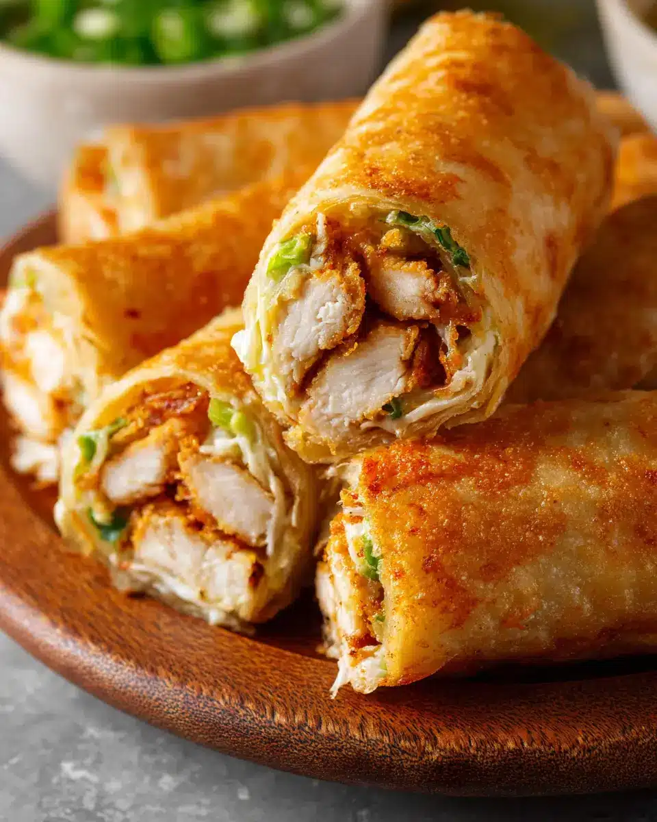 Absolutely! These delicious crispy chicken wraps are perfect for meal prep. You can assemble them and store them in the refrigerator for a few hours before frying. Just make sure to keep them covered and consider lightly dusting the edges with flour to prevent them from unfolding. When you’re ready to enjoy, fry them up until golden brown for that irresistible crunch!