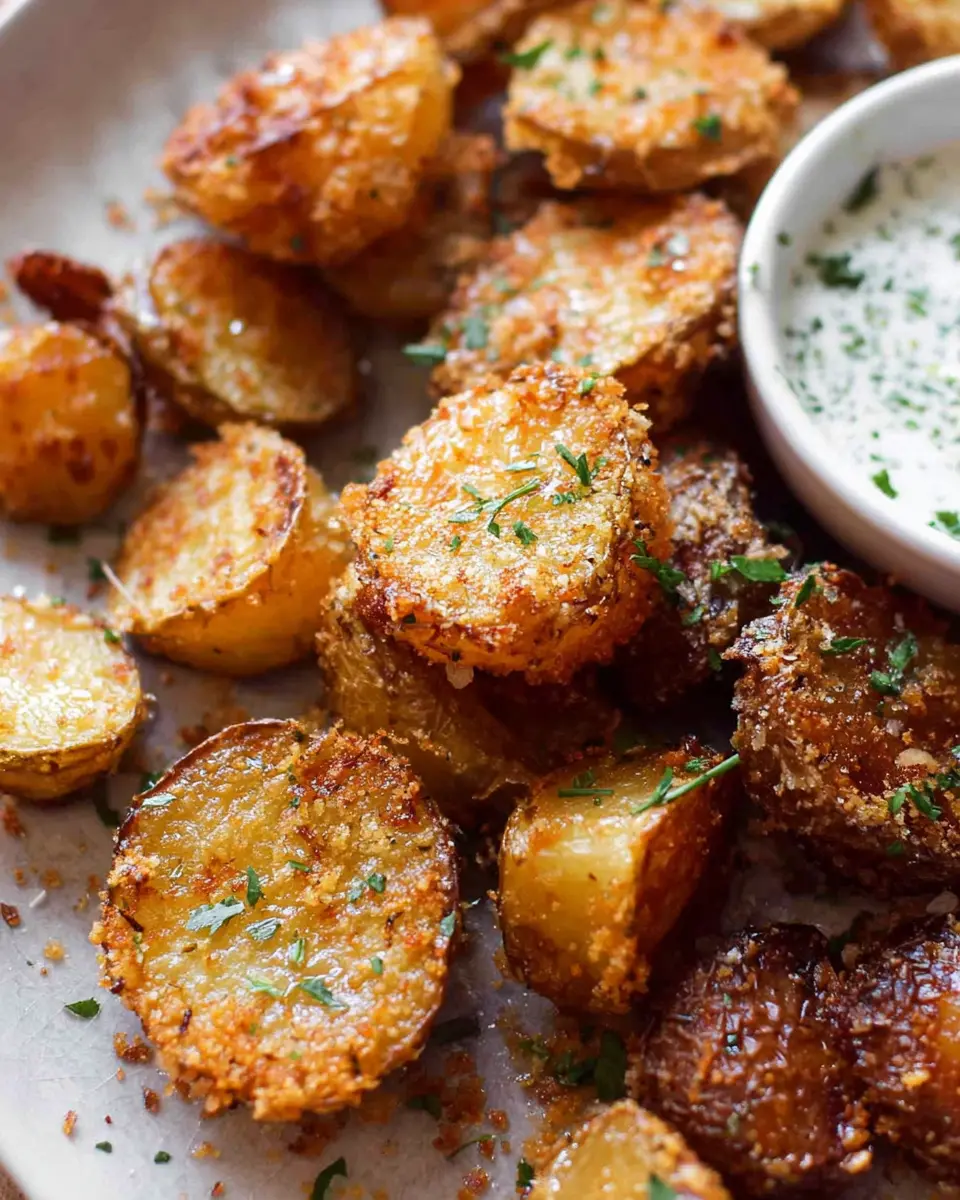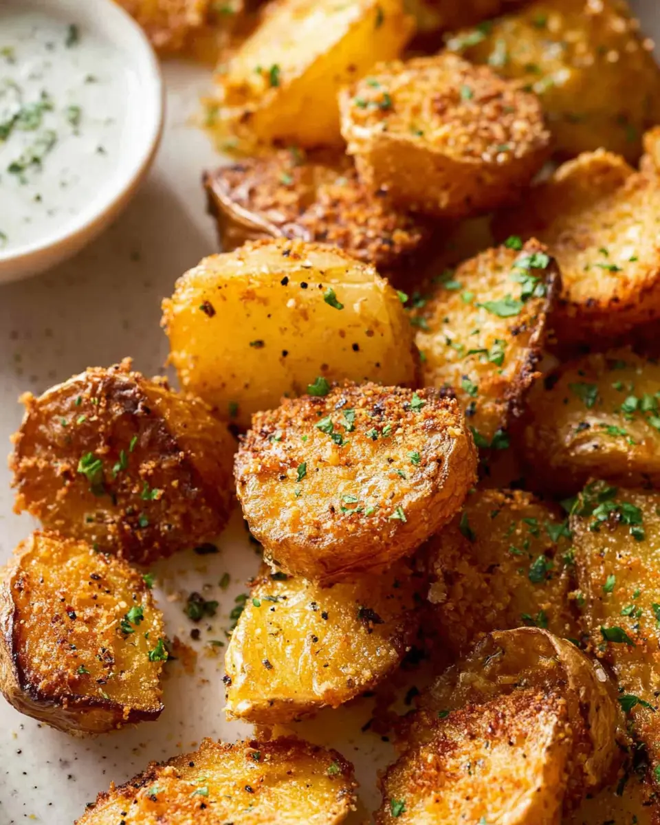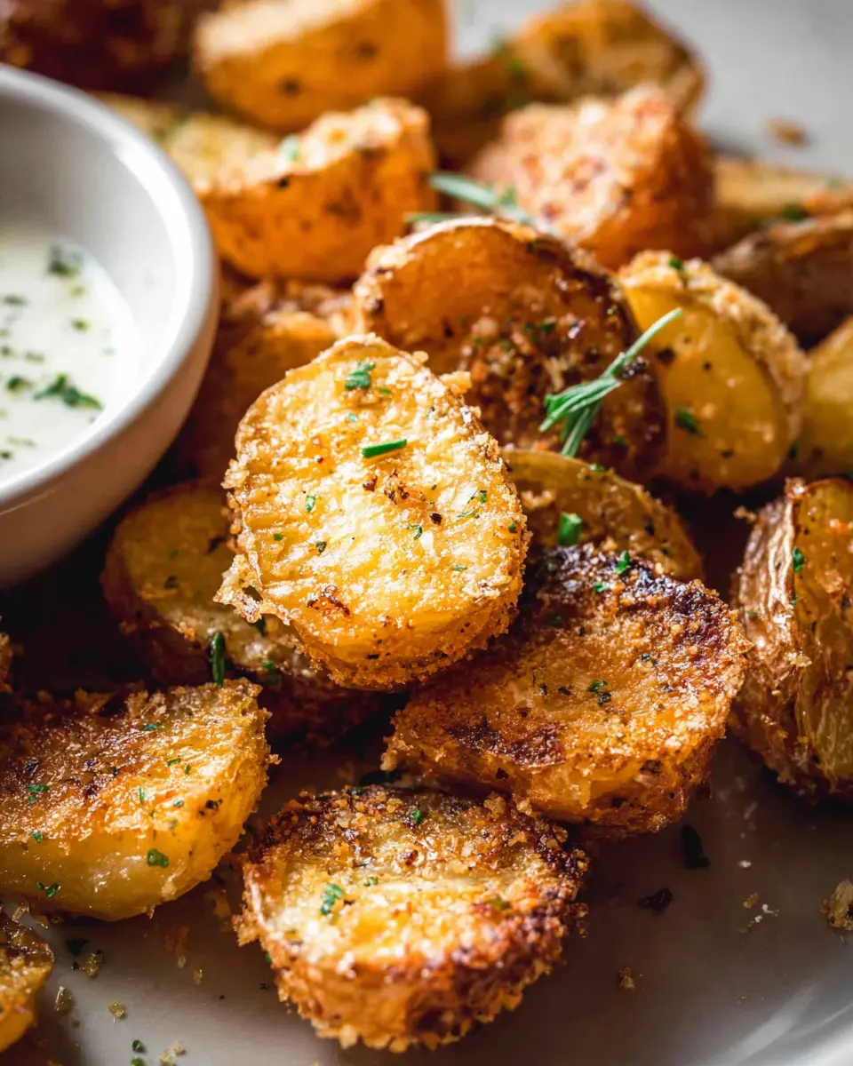 In conclusion, crispy roasted parmesan potatoes are a delightful addition to any meal. Their golden, crunchy exterior pairs perfectly with a creamy dipping sauce, making them a hit with friends and family alike. Don't hesitate to try this recipe for your next gathering—it’s sure to impress!