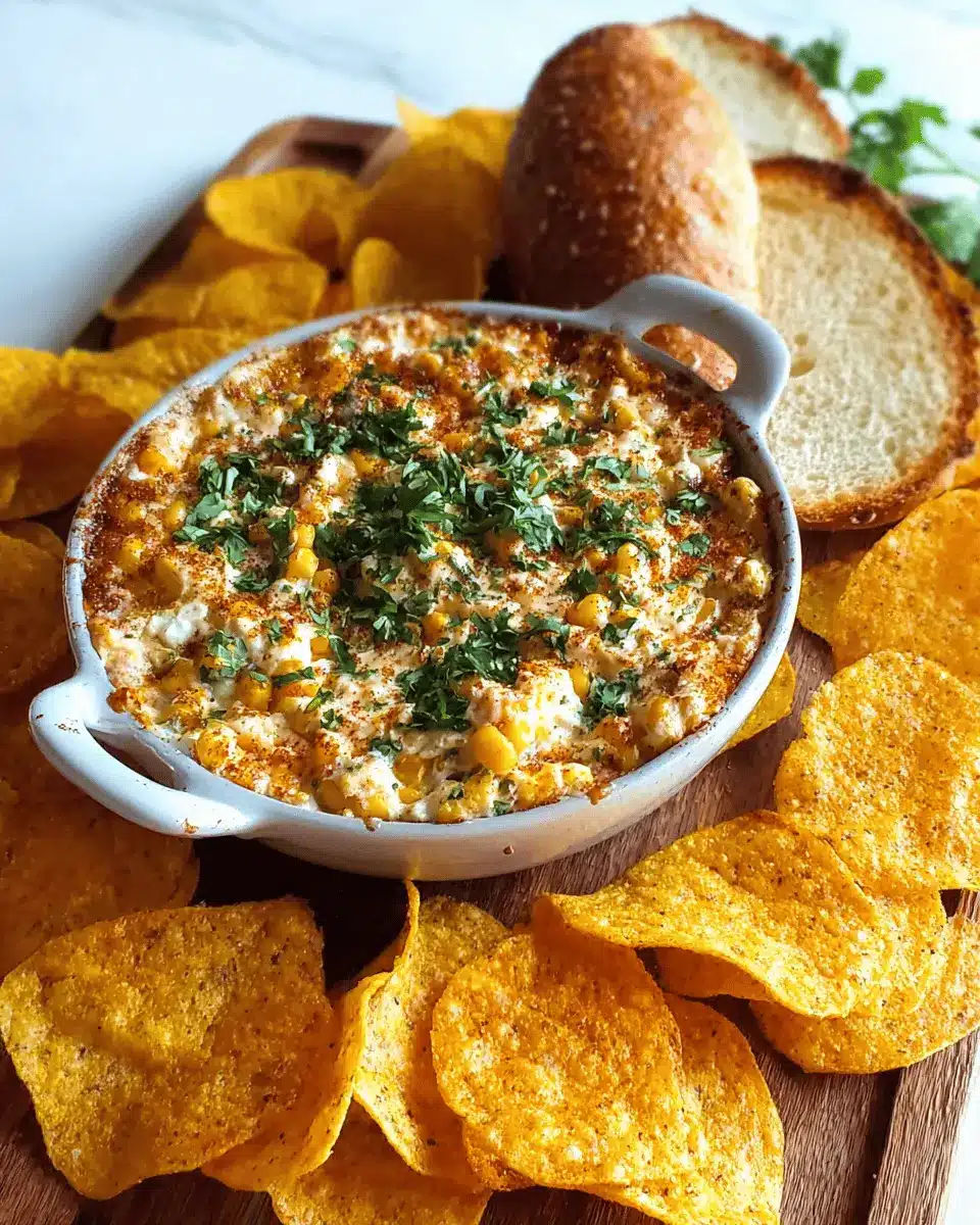 Now for the best part: serving. Transfer your elote dip to a stylish serving bowl and pair it with your favorite corn chips, Fritos, or even fresh veggies for dipping. Presenting your dip with a sprinkle of extra cilantro or cotija on top makes a lovely touch. You can also add lime wedges for an extra burst of flavor right before eating.