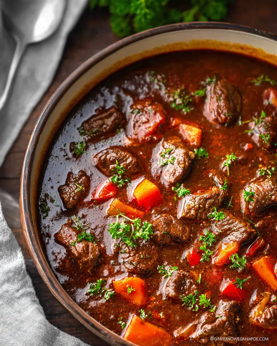 If you find your German goulash is on the thinner side, there are simple ways to thicken it up. You can mix a tablespoon of cornstarch with cold water to create a slurry and add it gradually while stirring. Alternatively, allowing the dish to simmer uncovered will let excess liquid evaporate, yielding a thicker sauce. Lastly, blending a small portion of the cooked vegetables can naturally thicken the dish while enhancing its flavors.