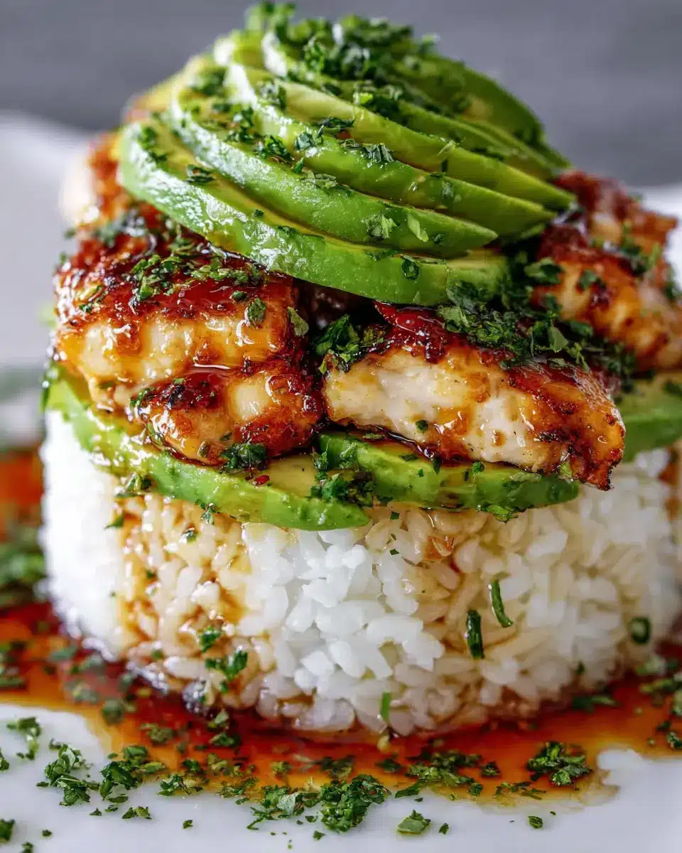 This recipe is an ideal antidote to a long day. It’s quick, easy, and packed with vibrant flavors that will impress even the pickiest eaters. By preparing this colorful stack, you’ll not only nourish your body but also reconnect with the joy of cooking. The combination of honey-glazed chicken, creamy avocado, and zesty rice brings life to your dinner plate — and believe me, it looks as wonderful as it tastes.