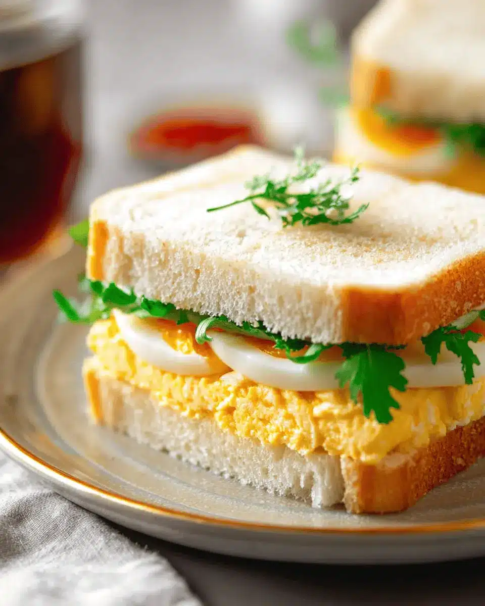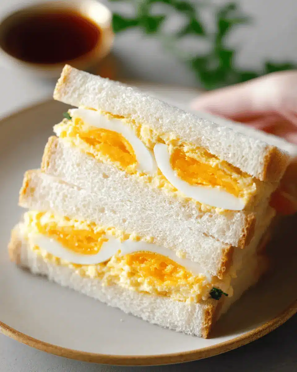Finally, cut your sandwiches in half diagonally for a lovely presentation. Serve them immediately on a clean plate, perhaps with a side of pickles or a refreshing salad. The combination of buttery flavors, creamy egg salad, and soft bread makes this Japanese Egg Sandwich a culinary delight. Not only does it look appealing, but every bite takes you straight to Japan!