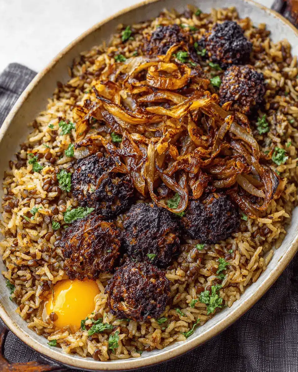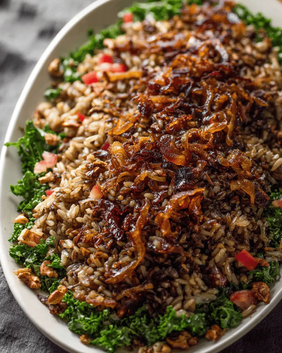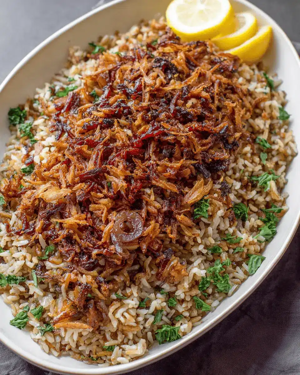 In summary, Lebanese Mujadara is more than just a dish; it’s a comforting blend of lentils, rice, and crispy caramelized onions that nourishes both body and soul. With its simple ingredients and hearty flavors, this vegan meal is perfect for any occasion. Try it today!