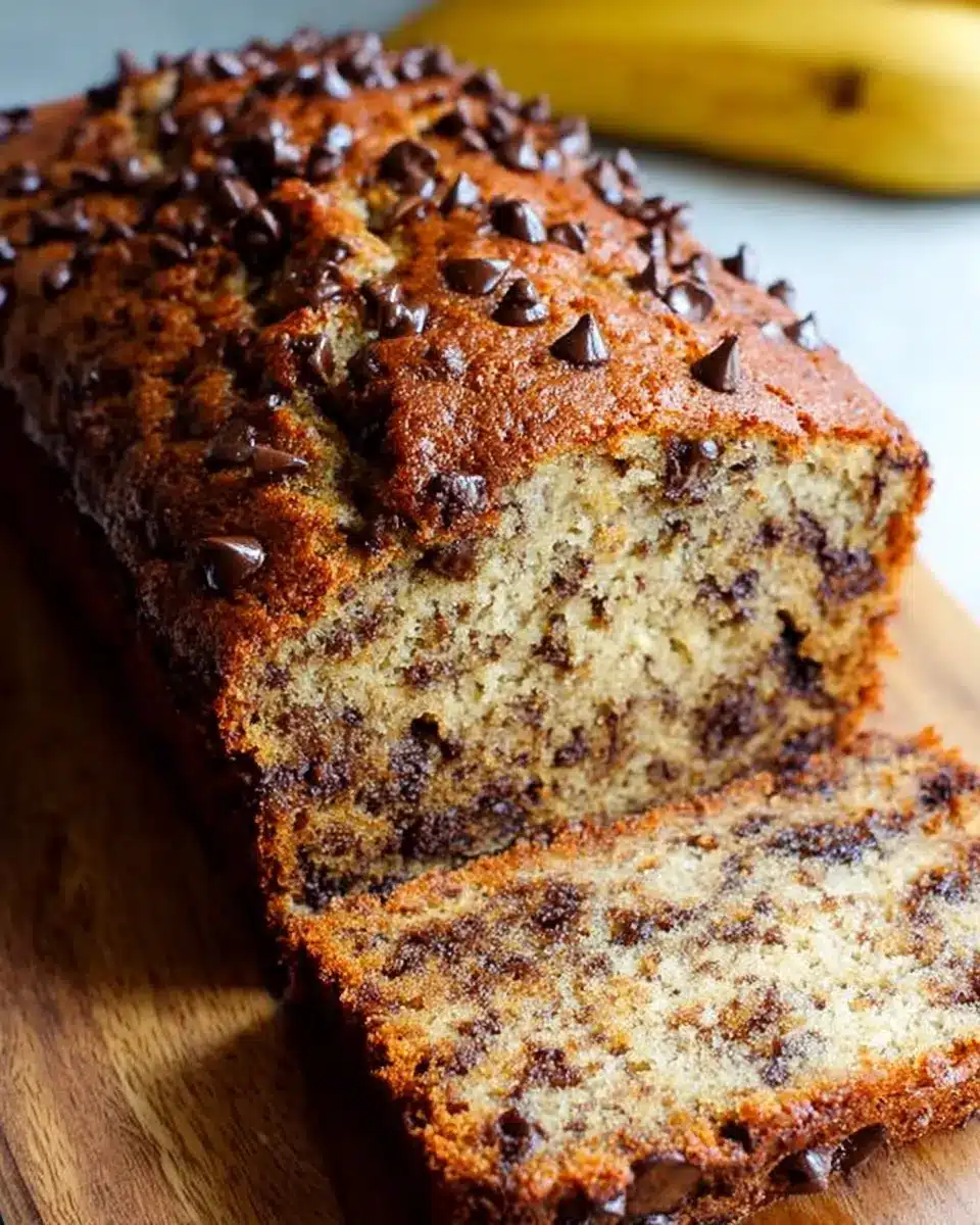 Get ready to slice into your delightful one bowl chocolate chip banana bread! It's perfect for breakfast, dessert, or an afternoon snack.