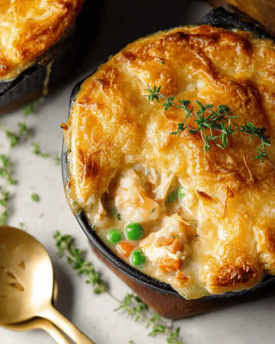 Pair your Seafood Pot Pie with vibrant sides to enhance your meal experience. Consider light, crisp salads such as a mixed greens salad tossed with a citrus vinaigrette. Fresh steamed asparagus or green beans can add a lovely crunch. For a heartier option, creamy mashed potatoes or garlic bread are excellent choices to soak up every bit of the savory filling.