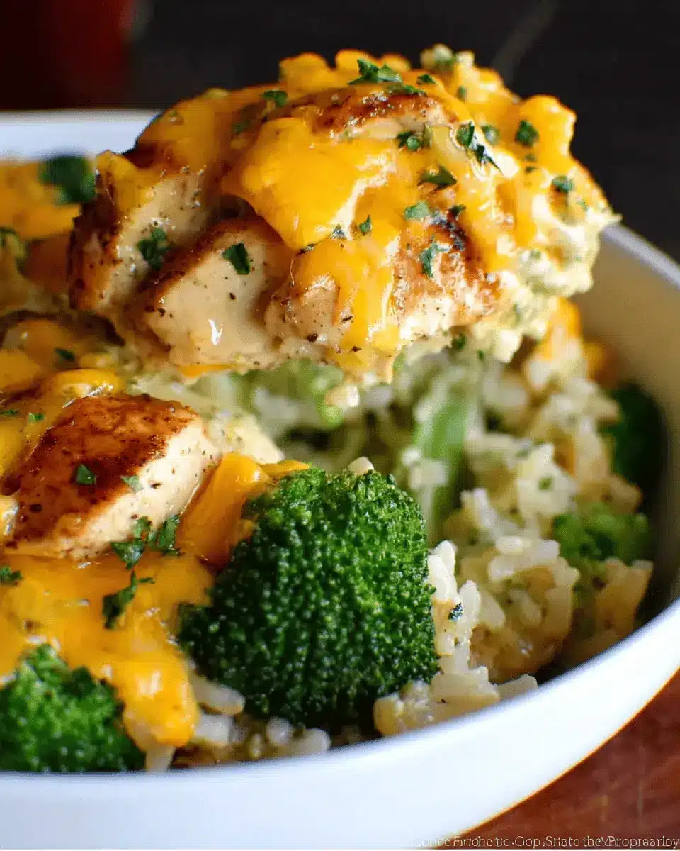 Slow Cooked Chicken, Rice, and Broccoli with Cheddar Cheese
