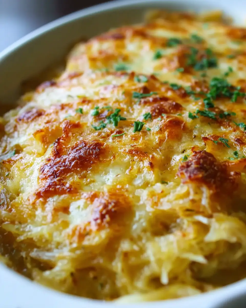 Spaghetti squash au gratin is a delightful and satisfying dish that elevates the humble spaghetti squash to a comfort food classic. Unlike traditional gratins that rely on heavy potatoes, this recipe embraces the unique texture of spaghetti squash, turning it into a creamy, cheesy delight. The squash is baked to perfection with a luscious blend of light Cheddar, sour cream, and sautéed onions, creating an indulgent flavor profile without the guilt. Imagine a warm, bubbling casserole dish set on your dinner table, inviting everyone to dig in!