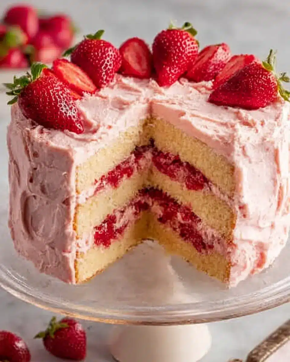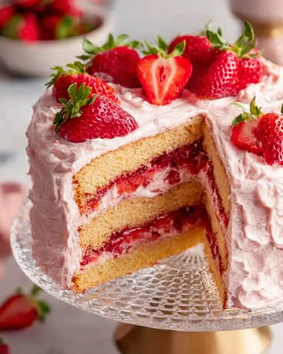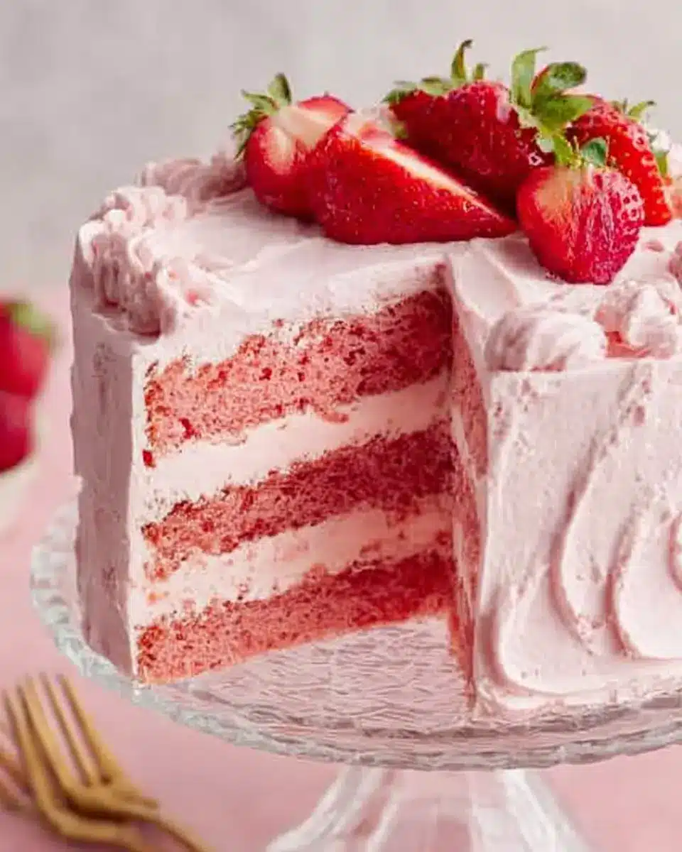 Serve this visually stunning and delicious strawberry cake at any gathering, and watch it disappear in no time. Enjoy every slice of this delightful creation!