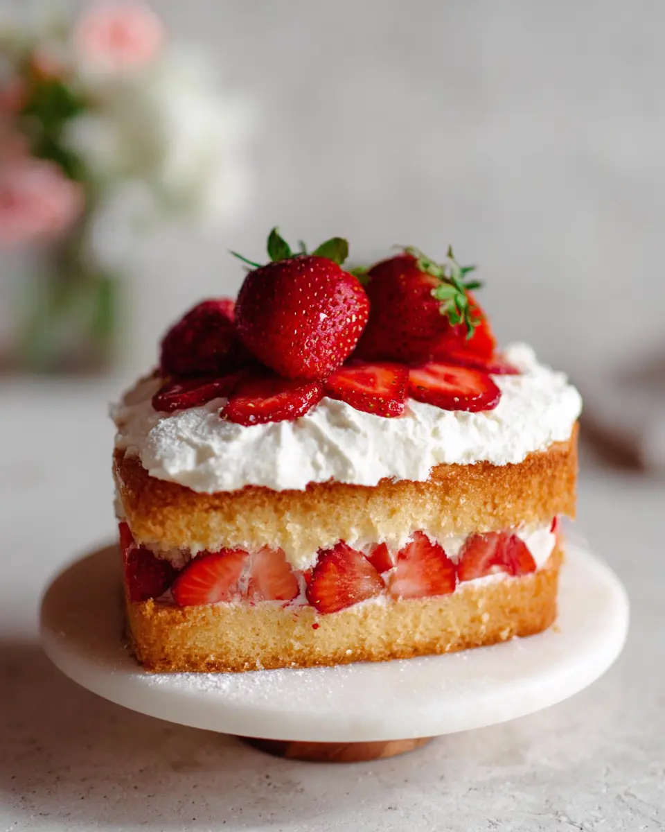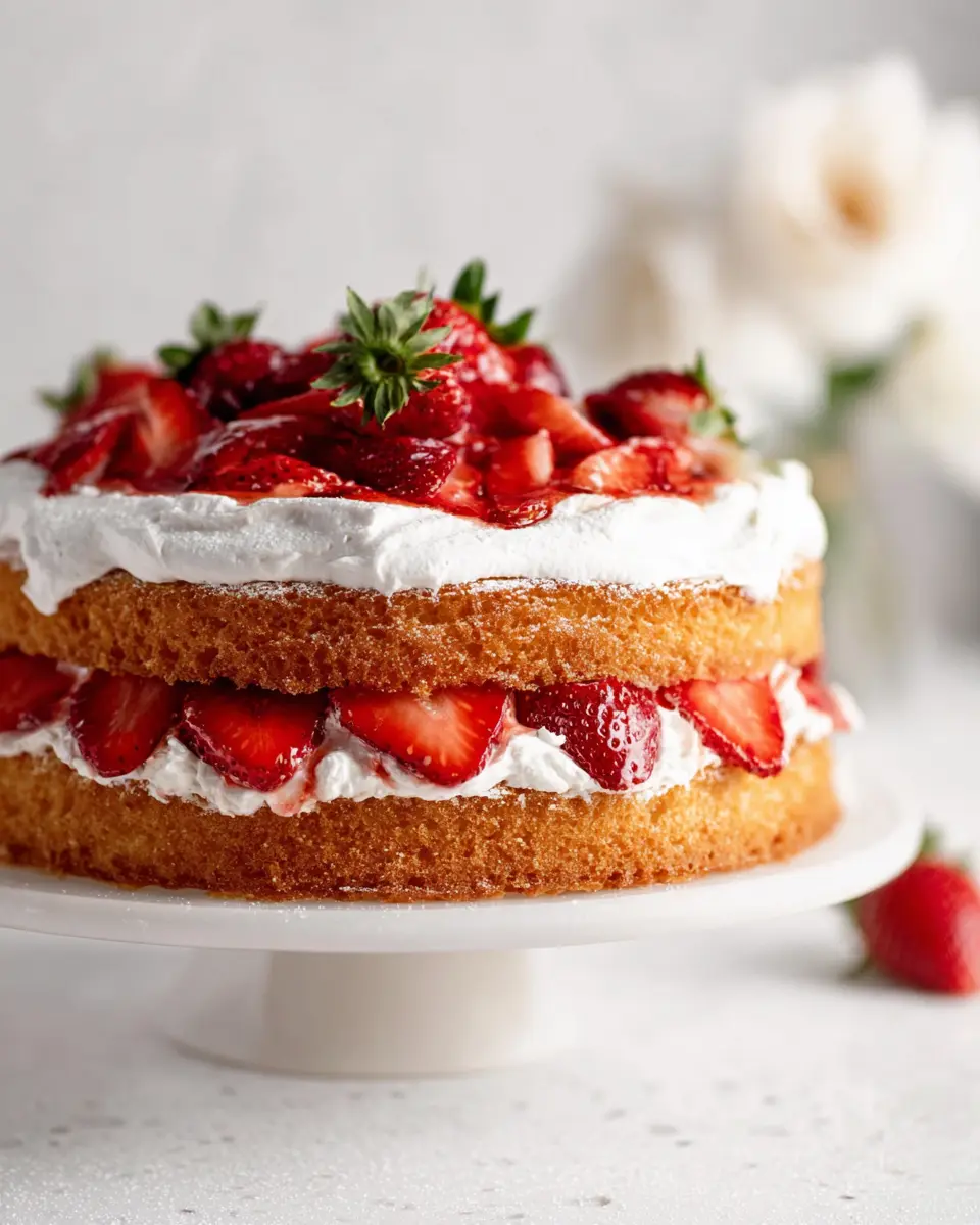 Cool Properly: Allow your cake to cool fully before topping it with whipped cream and strawberries. This prevents the strawberries from wilting and the cream from sliding off!
