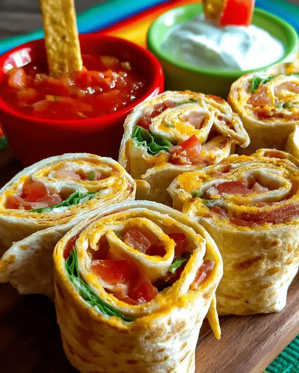 For a nutritious twist, load your tortilla rollups with a colorful array of veggies—think bell peppers, carrots, and spinach. These not only enhance the flavor but also boost the nutrient profile. Pair the veggies with hummus instead of cream cheese for a fresh and wholesome option.