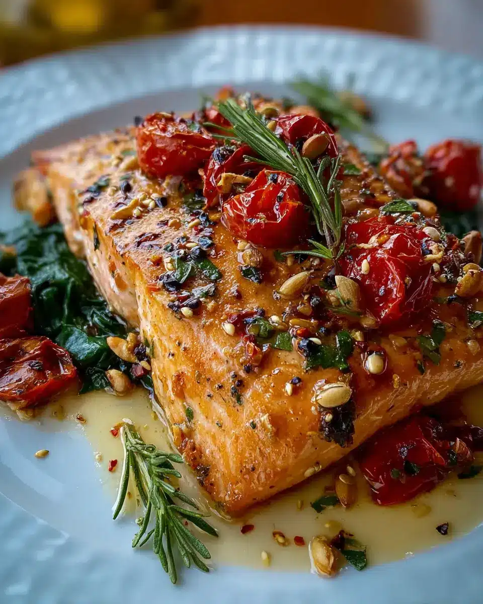 Elevate your Tuscan salmon by infusing it with a Mediterranean twist. Swap traditional cherry tomatoes for sun-dried ones for a sweeter, deeper flavor. Adding Kalamata olives introduces a briny pop that beautifully complements the salmon. Consider using a drizzle of balsamic glaze to finish; it adds complexity and a touch of acidity that balances the richness of the cream.